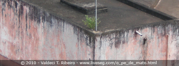 mato que brotou em cima do prédio vizinho, porém não se trata do cultivo de algum jardim, é apenas a natureza agindo por conta
